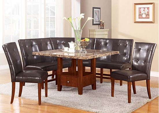 Britney Brown Marble Top Dining Table with Cherry Brown Leg - 17062