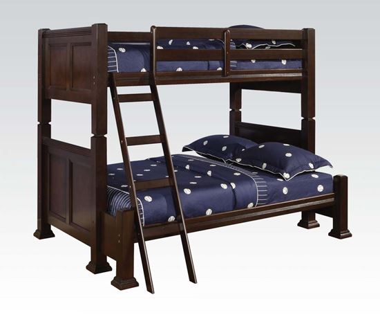 The new Espresso Bunk Bed is a great new modern item that is ready for your child's room! This item is built with solid hard wood and veneers. This item has panel detailing and vertical slats to complete the mission style in a rich espresso finish. Add this item for a great new age look with the traditional mission design. This product comes with slats and is mattress ready!