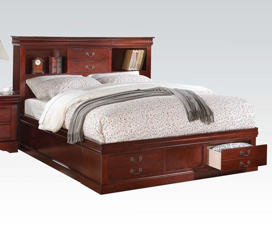 The Louie Philippe Sleigh bedroom collection features KD headboard, hand selected veneers and decorative antique brass hardware.This collection will complement your favorite bedroom