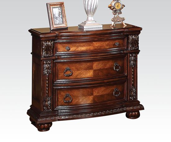 The Nathaneal traditional collection features elegant style and detail reflected in decorative carving hand selected veneers and over sized cases for any room environment.