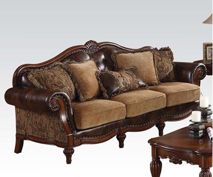 Dreena Traditional Bonded Leather and Chenille Sofa - 05495